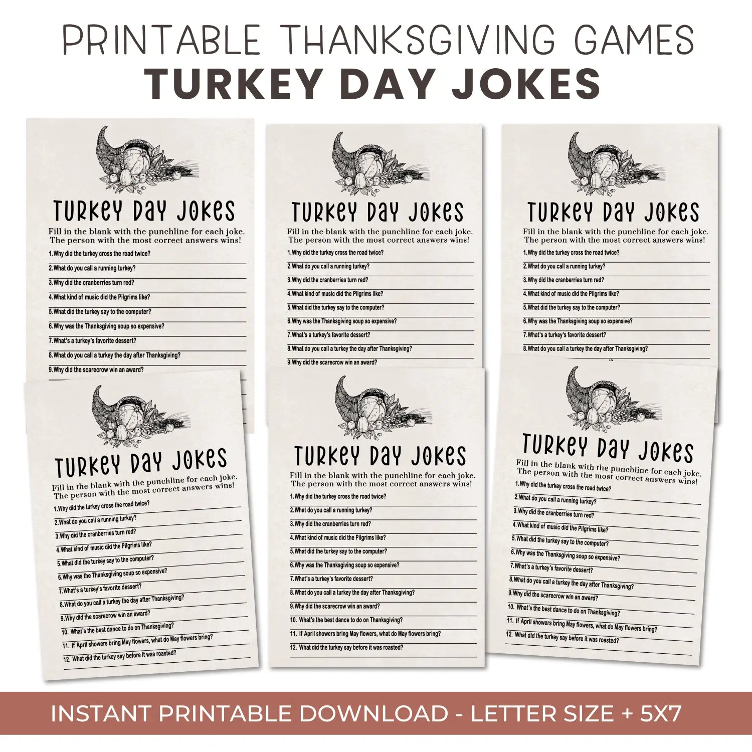 Thanksgiving Jokes Game Printable Hilarious Family Fun β Turkey Themed Digital Download, Family Fun, 5x7 Cards, Instant Download