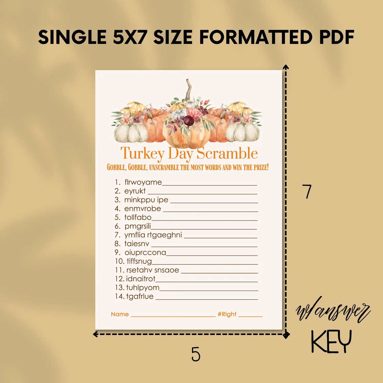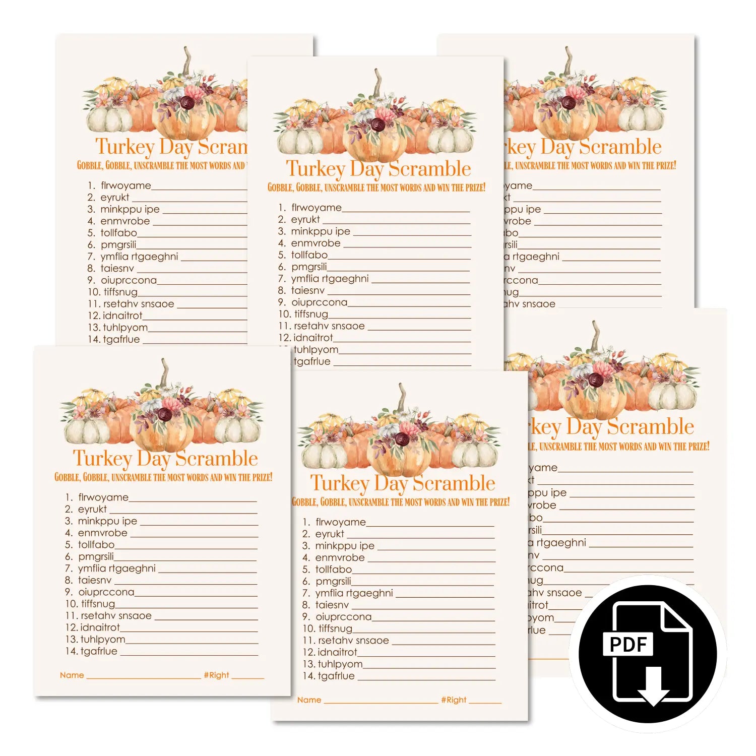 Celebrate Thanksgiving with fun and engaging word scramble games! This never-before-released printable set features a charming turkey design and is perfect for personal use at your holiday gatherings. Instantly downloadable as a high-quality PDF, these games are ideal for printing at home or your favorite print shop.